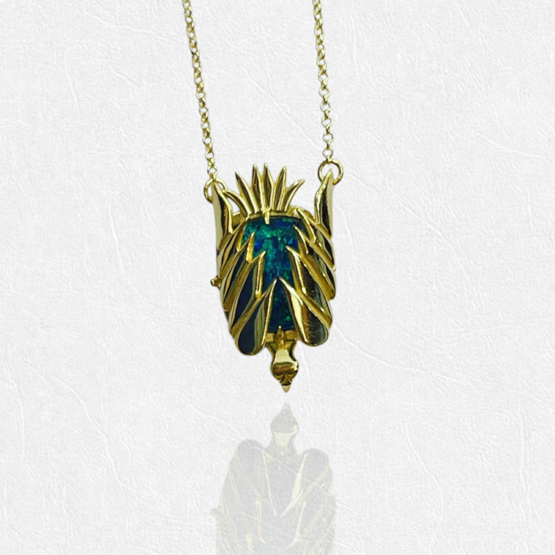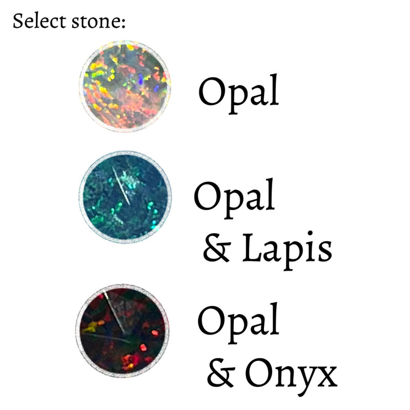 At its center lies an opal stone, known for its calming energy, clarity and pure intention.